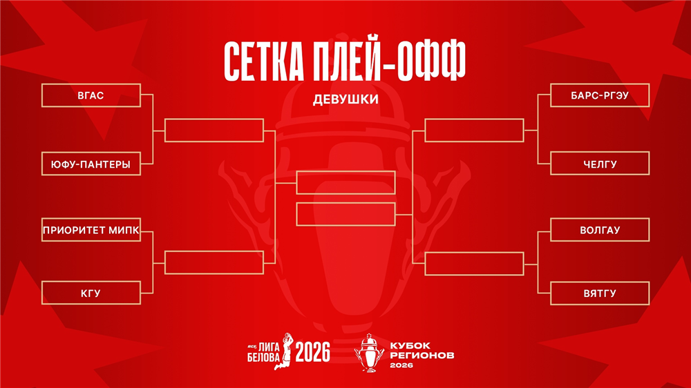 У женщин в 1/4 финала состоятся матчи ВГАС – «ЮФУ-Пантеры», «Приоритет МИПК» – КГУ, «Барс-РГЭУ» – ЧелГУ и ВолГАУ – ВятГУ.